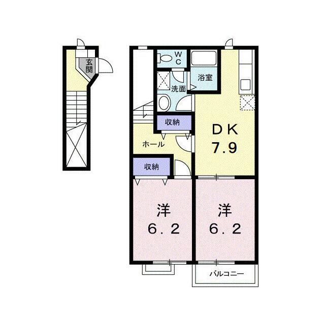 | 間取り | 2DK(洋6.2・洋6.2・DK7.9) | 主要採光面 | - |